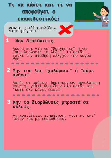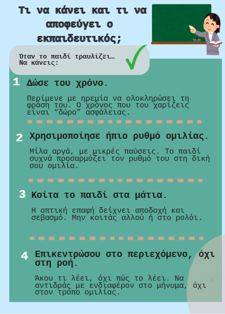 Ένα παιδί που τραυλίζει μπορεί, μέσα σε μια τάξη γεμάτη κατανόηση, να βρει το θάρρος να μιλήσει χωρίς φόβο.